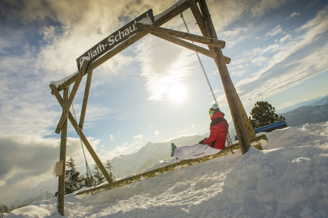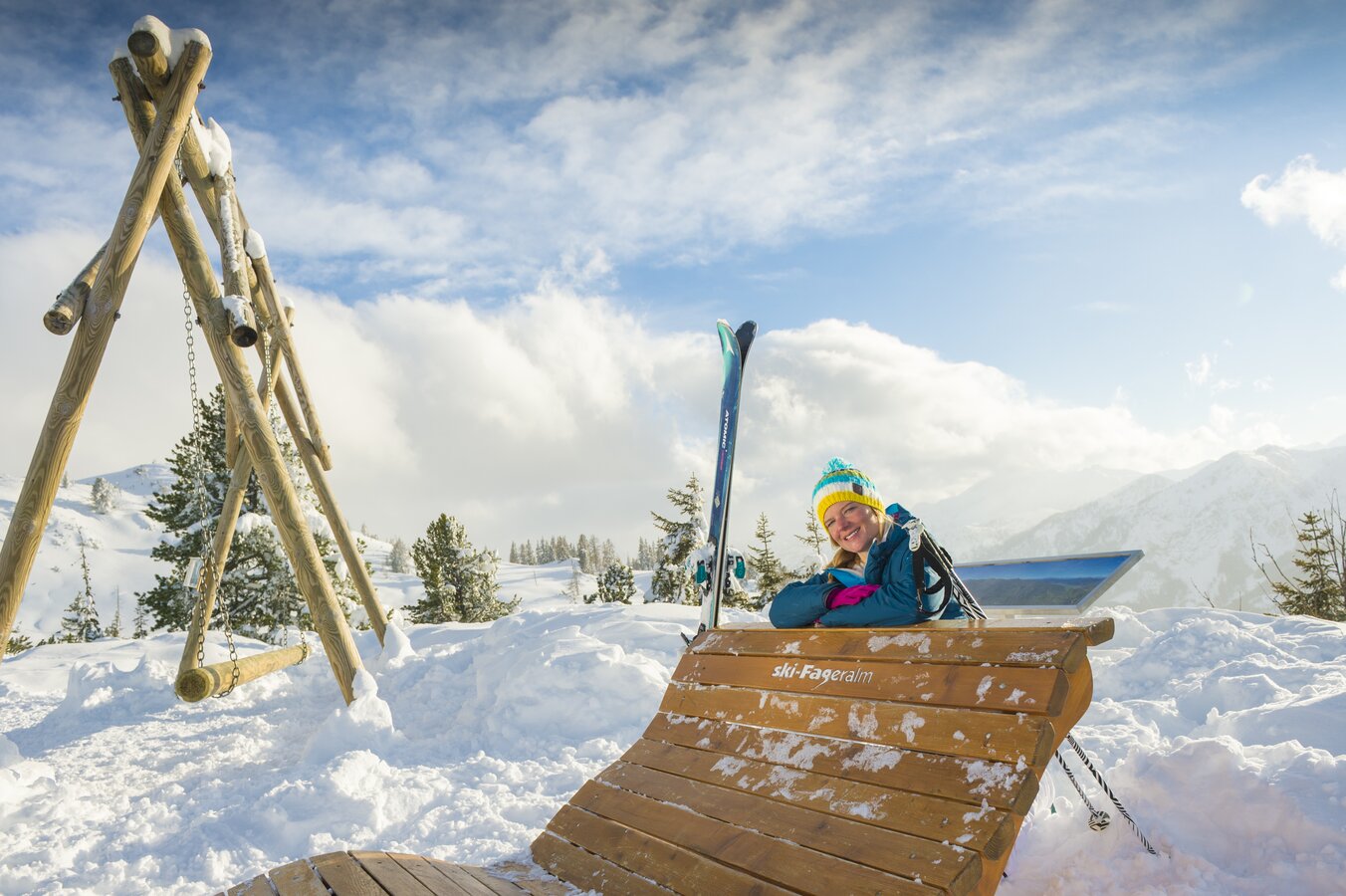 Am höchsten und schönsten Aussichtspunkt der Fageralm, im Bereich Bergstation Hinterfager-Lift, wartet die "Goliath-Genuss-Oase" auf dich.