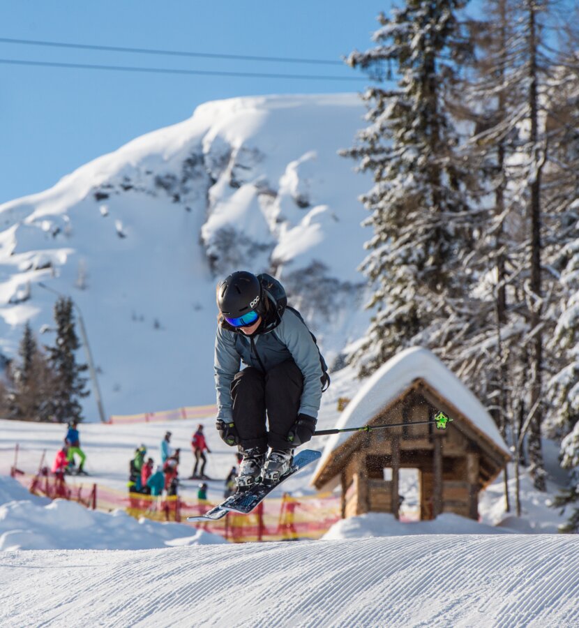 Erlebe auf 750 Metern pures Skicross-Feeling. Die zahlreichen Steilkurven, Wellen, Sprünge und Roller sorgen für einzigartige Abfahrten und Pistenspaß der Extraklasse.