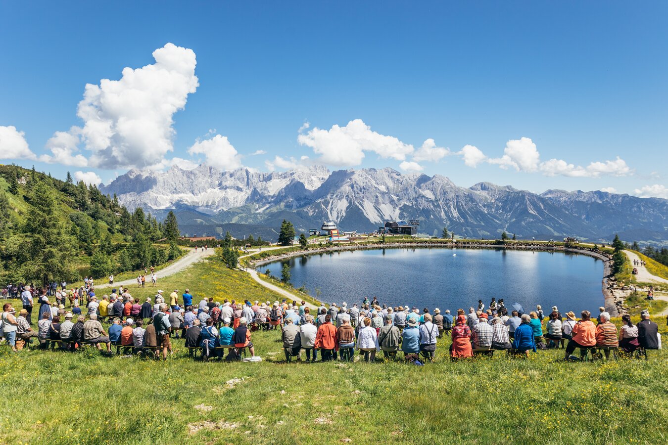 The ecumenical mountain church service, accompanied by the Pichler wind quartet, starts at 11.00 am and takes place in the middle of the beautiful natural landscape at Reiteralmsee, near the Preunegg Jet mountain station.