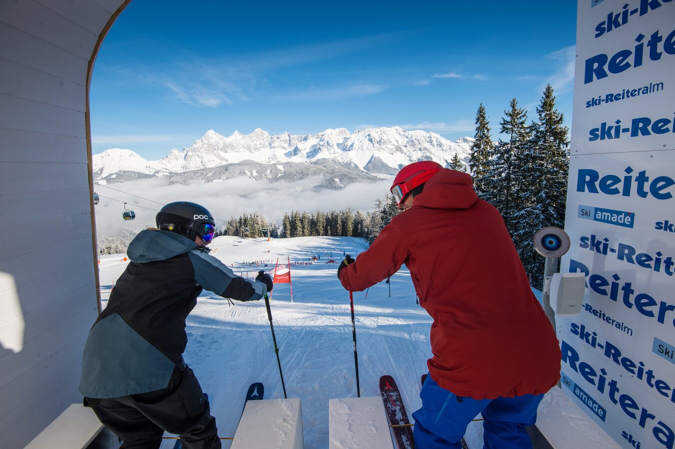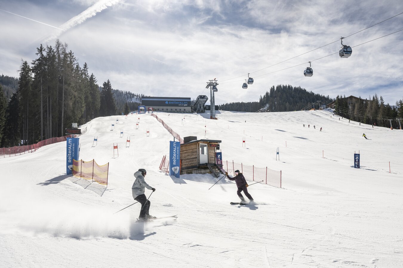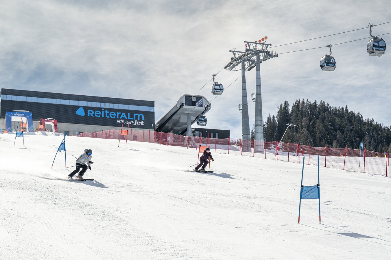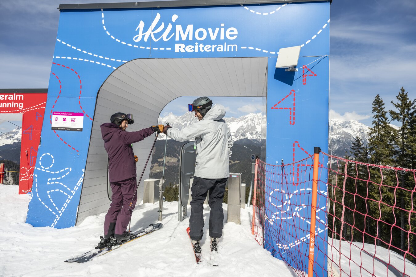 Right in the center of the Reiteralm, a real racing highlight with memorable value awaits you. Right next to the mountain station of the 8-seater Silver Jet cable car, on the Haseck piste, you will find the permanent "Skimovie" parallel race course.